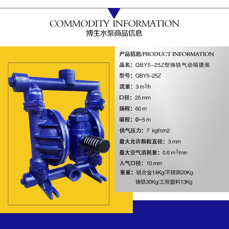 QBY5-25Z型鑄鐵氣動隔膜泵