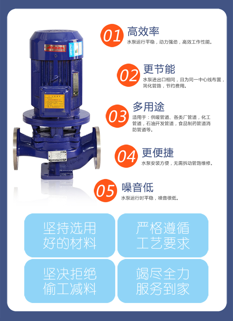 IHG型不銹鋼立式管道離心泵、單級不銹鋼離心泵、臥式離心泵、立式離心泵、熱水泵、循環泵等是我廠技術研究所聯合國內水泵專家選用國內優秀水力模型,在一般立式管道泵的基礎上進行巧妙組合設計而成,同時根據使用溫度、介質等不同在ISG型系列管道泵的基礎上派生出適用熱水管道泵、高溫耐腐蝕化工管道泵、管道油泵。該系列產品具有高效節能、噪音低、性能可靠等優點。符合最新國家機械部JB/T53058-93的標準要求,按國際ISO2858標準設計制造。